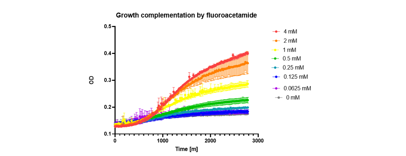 The next thing to do was establish that hydrolysis of fluoroacetamide is toxic. Weirdly, it was not. The more fluoroacetamide I added the better cells seemed to grow.